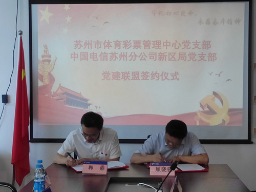 6月9日上午,苏州市体育彩票管理中心党支部与中国电信股份有限公司苏州公司新区局党支部在新区电信局开展了党建翼联签约仪式,双方进行了业务交流,并签订党建翼联协议书。随后,全体党员一同前往李强纪念馆参观学习、重温入党誓词。