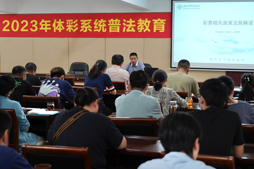 为深入贯彻依法治彩理念,推进我市责任彩票建设和体彩系统行风建设,9月15日,无锡市体彩中心组织开展专项普法教育培训。市中心全体干部职工及县(市、区)中心专管员参加了培训。