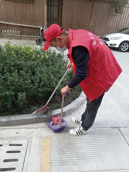 活动在一片热火朝天的气氛中开展。志愿者们带着扫帚、铲刀、簸箕、抹布等各种工具,清理社区环境中的垃圾。志愿者小队各司其职,齐心协力,清理小广告,捡拾路边垃圾,清理小区道路杂物。大家先将小区楼前楼后的生活垃圾处理干净,又将小区大门柱、围墙等处乱贴乱画的杂物清除干净。同时,注意将灌木丛中的塑料袋、花坛中的杂草、纸屑等进行了细致清扫。很快,塑料袋、碎纸屑、小广告都不见了。