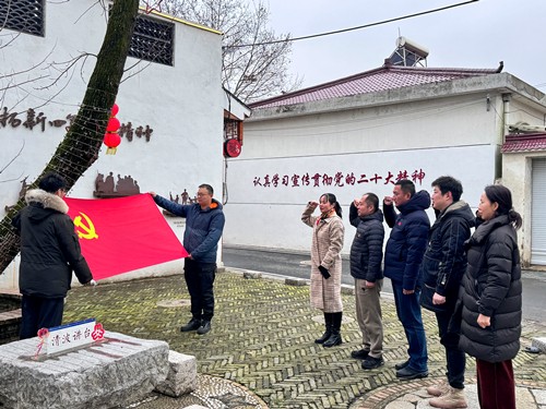2月5日下午,常州市体彩中心党支部走进溧阳市竹箦镇姜下村,开展“树荫下的党课”主题党日活动,与党旗合影并宣誓,展示出高度的团队凝聚力和强烈的使命感。