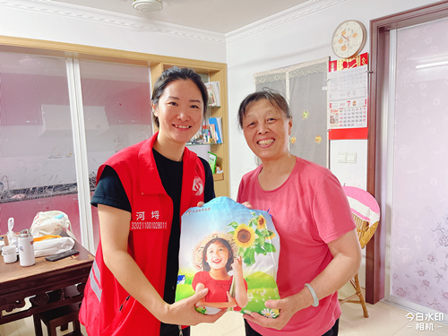 “夏日送清凉,党群心连心”,中心为社区群众准备了花露水、毛巾、洗发水等清凉包,与志愿者结对上门,为年迈老人、困难群体等送上体彩的一份心意。此外,中心还在蠡溪苑“溪引力.连心驿站”设立了“体彩清凉驿站”,为户外工作者提供休息场所和免费饮用水,助力他们度过一个安全、清凉、舒适的夏季,接受住天热大“烤”。