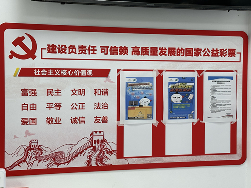 走进网点,店内精心设置了文化墙,展示社会主义核心价值观,聚焦安全生产、理性购彩等责任彩票理念,营造了庄重温馨的学习氛围。