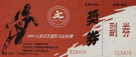 附:1984年至1995年北京马拉松赛奖券,供欣赏。(华明)