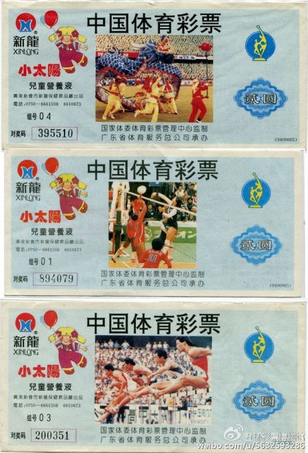 其中一张彩票印有5个奖级的中奖规则,二等奖至五等奖的中奖率少于当今主流的标准6位数玩法。无论是玩法设计、还是投注方式的变化,均体现了中国早期地方传统型体育彩票玩法设计、技术体系的限制。1993年至1995年,福建、广东、江苏、吉林等省份开始尝试发行电脑体育彩票,1996年9月,中国人民银行肯定了电脑销售体育彩票的形式并正式批准包括江苏在内的6个省市作为电脑型体育彩票销售试点,为1998年6月国家体育总局体育彩票管理中心统一组织管理、统一技术标准、统一运行软件、联网统一发行电脑型中国体育彩票做了有益的探索,积累了试行经验。