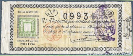 我们见到的“吕宋票”,是1886年由上海有利洋行发售,票面上有销售洋行的印戳。该彩票长16厘米,宽5.5厘米,面值为50cents(美分),彩票正面印有编号、发行单位、开奖时间和彩票说明。“吕宋票”还附有封套。这套彩票是清末时期的历史实物,甚为罕见。