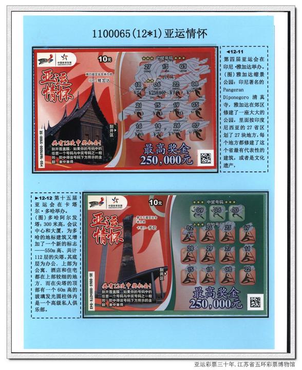 为纪念亚运彩票发行三十年,暨江苏省五环彩票博物馆对外开馆十周年,本馆特举办《亚运彩票三十年跨年展》,展出具有代表性的亚运体育彩票,与观众分享体育文化、亚运文化、彩票文化。鉴于目前新冠肺炎疫情形势,为保障观众的健康安全,本次展览由线下调整为网上举办,每周向观众推送系列专题连载。