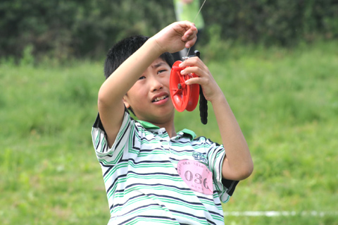 不过小记者们或许是没有经验,一个小选手刚把风筝放飞,线就断了;还有一位小选手在场地上放得好好的,正打算将风筝引到留空计时区域时,没想到风筝突然断线了,这位小选手显得懊恼不已。其中一个笑脸的风筝则引得所有裁判大笑不已。