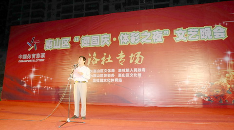 文艺晚会由惠山区文体局、洛社镇人民政府主办,洛社镇文体站、惠山区体彩办和惠山区区文化馆协办。晚会现场,惠山区文体局钱局长介绍了近年来惠山区文体事业和体彩事业的发展情况,体育彩票公益金对体育事业及全民健身事业做出的积极贡献。