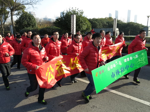 2013年元月1日上午9点,伴随着一声清脆的枪声,无锡市4000多名市民从蠡湖之光出发,开始了主题为“健康快乐 和谐奋进”的元旦长跑活动。由无锡市体彩中心组成的50人方队用长跑的形式展现体彩人蓬勃向上的精神风貌,迎接新一年的到来。