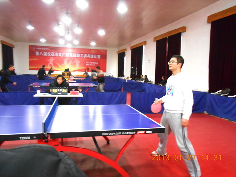 为了丰富职工的体育文化生活,展示职工的精神风貌,增加凝聚力及合作意识,营造团结和谐的精神氛围,2013年1月27日,仪征市举办了“体育彩票杯”文广新系统第八届职工乒乓球比赛。