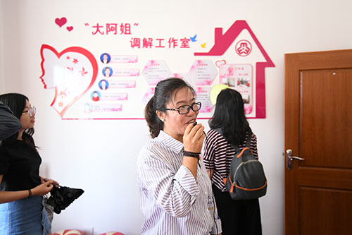 “平日健身的都是村里的姐妹们,我们都是跳出来的感情”。有了共同的健身爱好,喻向梅就有了自己的圈子。2013年,由当地妇联创建的“美丽庭院”民生工程中,喻向梅也搭建起了自己的巾帼志愿服务团队,并设有红娘、金牌调解员和艺术团指导等多位志愿工作者,全身心地服务于当地的居民和家庭。“姐妹同携手,巾帼暖人心”,对于喻向梅而言,通过参与健身活动融入当地、建立情感甚至找到了自己的事业,不知不觉间,她其实早已在这里扎下了根。