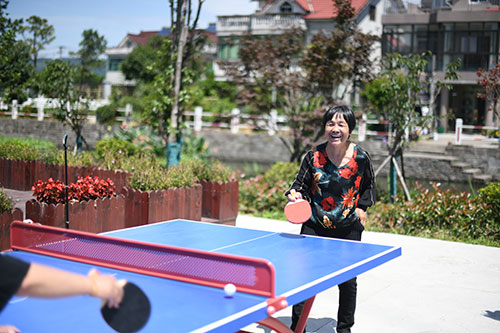 喻向梅就经常拉着老人去广场跳佳木斯健身操,认识朋友。老人开心了,思想工作也更好开展了。虽然没有门球场,但体彩公益金支持建设的篮球场除了满足青少年使用外,同样适用于老年群体跳广场舞。对于老人来说,这同样是体彩公益带来的关怀。在体彩公益金的持续投入下,2018年西经堂村成功创建为浙江省农村体育小康村升级工程单位。