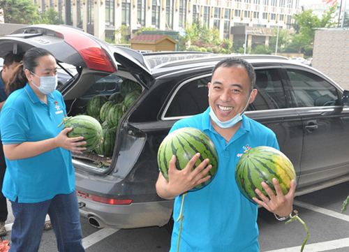 今年7月8日,青岛体彩“购瓜扶贫献爱心”活动订购13000多斤西瓜,送往全市600余家体彩实体店。“之前也组织过几次爱心义卖活动,大家都很积极。”体彩销售员刘飞表示,参与这样的公益活动,让自己对体彩事业有了更强的责任感和使命感。