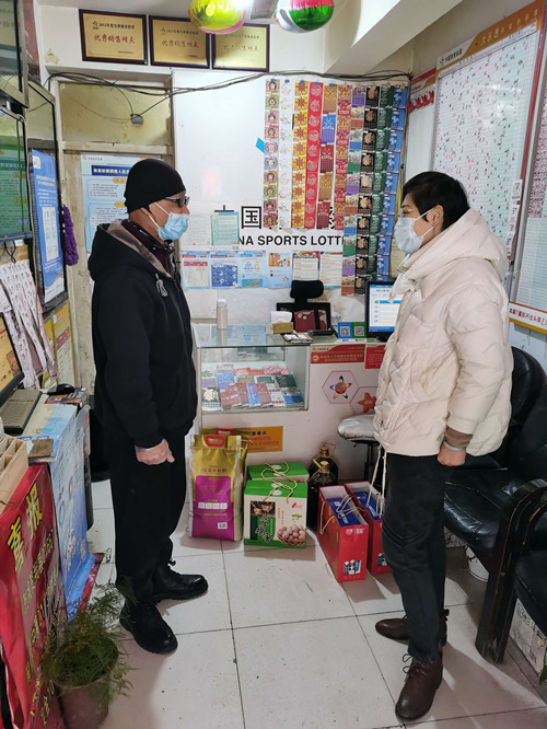 1月24日上午,连云港市东海县体育彩票管理中心工作人员一行走访慰问体彩销售网点,为困难网点带去体彩大家庭的温暖和祝福。