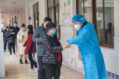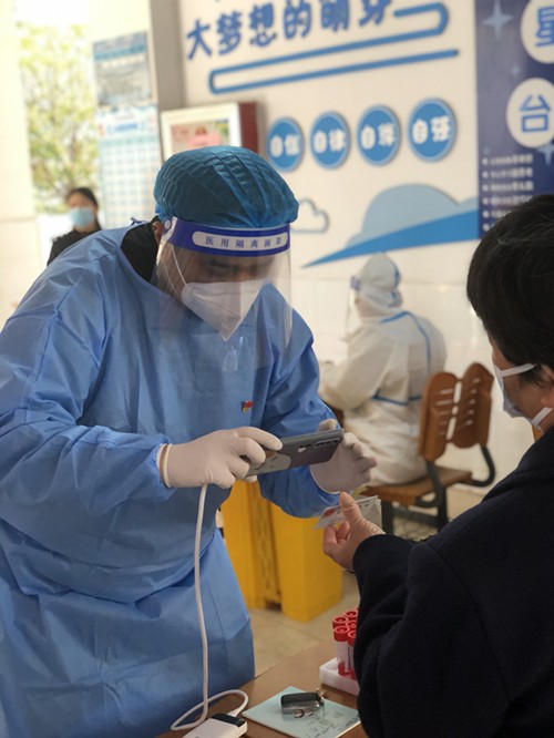 第一批志愿者同志已经率先投入到了社区一线防疫任务当中,在时间紧、压力大的情况下,志愿者认真做好个人防护,积极配合现场指挥,与医护工作人员共同努力,认真完成各项工作。作为此次志愿者之一的孙寅表示:“作为一名共产党员,理应在最需要的时候冲锋于一线,为打赢防疫战贡献自己的力量。”核酸检测期间,志愿者们积极做好检测点现场秩序维护工作,有效保证了检测现场管理有序、进展顺利。