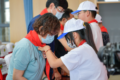 活动现场,溧阳市汤桥小学副校长李卫东致欢迎辞,少先队员代表为到场的体彩中心工作人员佩戴上鲜艳的红领巾。常州体彩向汤桥小学赠予了一批价值2万元的体育运动器材,汤桥小学向常州体彩回赠了锦旗。活动结束后,大家一起参观了日益现代化的校园。