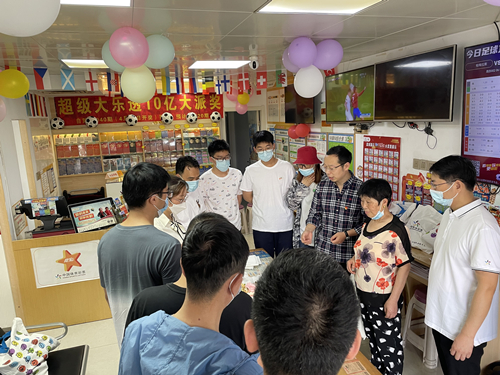 6月16日盐城体彩以“遇见·世界杯 相约竞彩”为主题,开展了“6.16江苏彩民节”活动,庆祝活动在盐城市盐都区恒大名都花园17号楼101门市3209059171网点正式举行。盐城市区专管员、网点业主、销售员与现场购彩者们一起切蛋糕,路过的购彩者们也纷纷进店见证这专属于自己的节日,现场气氛十分热烈。市体彩中心工作人员和购彩者们还进行了世界杯沙龙互动,并为大家准备了钥匙扣、折叠包、毛巾等精美礼品。
