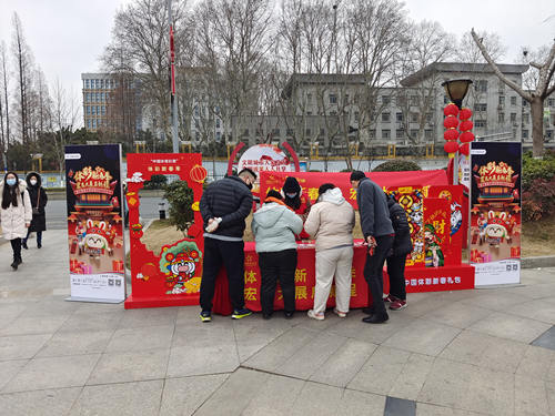 体彩新春微公益,多彩活动闹元宵。2月5日元宵节当天,南京江北新区体彩在桃湖公园、金象城广场、盘城社区广场等元宵节活动现场开展公益体彩地推活动,现场设置有体彩宣传、即开票体验、有奖打卡等丰富多彩的活动。