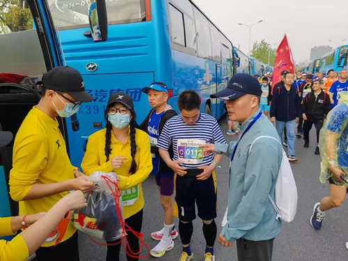 4月16日凌晨3:40,扬州体彩存衣组各队队长在中心集中乘坐大巴前往南京邮电大学通达学院接志愿者前往起点;4:00其余中心全体人员到岗前往马拉松起点;5:20前全体志愿者和工作人员到达存衣现场,张贴车身存衣须知,张贴车内车窗贴;6点30开始接受存包。存衣现场虽然繁忙,但是有条不紊;8点存衣工作结束,全体工作人员前往终点准备取衣工作。9:30所有的存衣包全部按序摆放到位,10:00取衣工作开始进入高峰期,只见26个取衣帐篷前人头攒动,扬州体彩工作人员和志愿者们或引导跑者取衣,维持现场秩序,或核实取衣信息和发放,现场井然有序,13:00存取衣工作圆满结束。