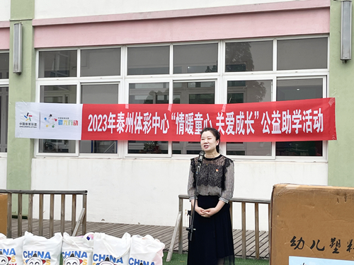 泰州市体彩中心主任周莉表示,少年儿童是祖国的希望和民族的未来,泰州市体彩中心此举旨在共同推动教育、体育事业融合发展,帮助儿童在体育锻炼中享受乐趣,增强体质,健全人格,促进幼儿“体、智、德、美、劳”全面发展。中国体育彩票作为国家公益彩票,时刻关爱青少年健康成长,在助学的道路上将不断汇聚微光,聚沙成塔,守住公益初心,践行责任使命。