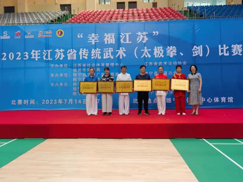 7月17日,在体彩公益金的支持下,由江苏省社会体育管理中心、江苏省武术运动协会、徐州市体育局主办;睢宁县文体广电和旅游局、睢宁县体育总会、睢宁县武术协会承办的“幸福江苏”2023年江苏省传统武术(太极拳、剑)比赛在睢宁县体育中心体育馆圆满落幕。