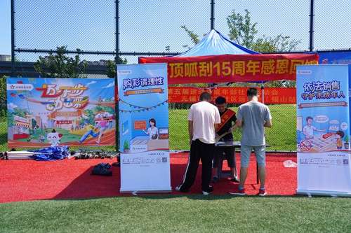 在绿茵操场上,无锡体彩搭建了“迈开步 动出彩”品牌落地互动产品营销体验区、责彩宣传区等,大家既可以了解体彩公益金的用途,还能购买即开顶呱刮一试手气。