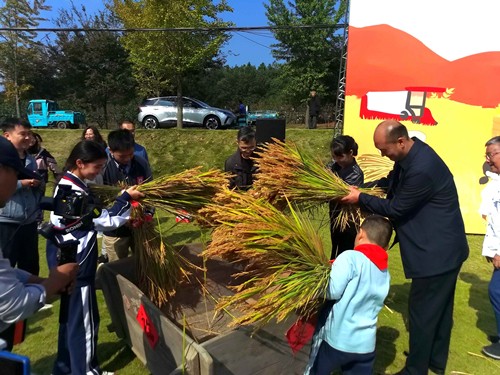 参与本次活动的有来自镇江市红旗小学低年龄段的小学生,有来自镇江市外国语学校的初中生,还有来自镇江丹阳正则高级中学新疆班的高中生,他们聚齐在一起,一同走进句容戴庄的田地里,以天地为教室,以自然为老师,体验农耕的乐趣。农技专家、时代楷模,全国脱贫攻坚楷模赵亚夫老爷爷给孩子们讲述了一粒米的诞生,土地的力量,以及他扎根农村六十多年农业发展的变化,并寄语孩子们要努力学习,科技报国。讲解后,大家一起下田地,亲身体验割稻子。挽起袖子弯下腰,左手抓稻,右手握刀,刀口向斜,手起刀落,穿梭于稻田间,一茬一茬地收割成熟的稻子,体验最原始的收割方式,真正体会了“锄禾日当午,汗滴禾下土”的艰辛。