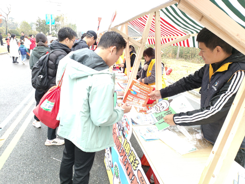 在赛事终点,句容体彩设置了打卡点、拍照墙、公益金展示板、微光市集区,体彩工作人员向现场人群发放公益、责任宣传单,跑者不仅体验了速度与激情,到终点后进行拍照打卡,记录青春的瞬间,同时还进一步了解了中国体育彩票为人们对美好生活向往所作出的贡献。