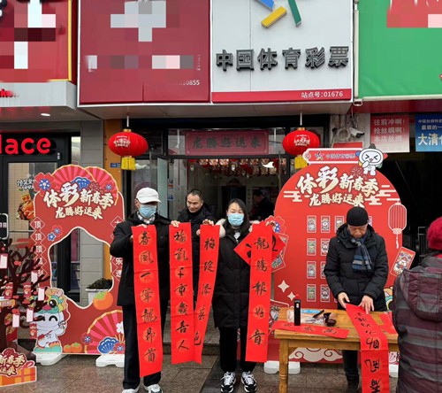 本次迎新春送春联系列活动,不但将平安、和谐、祥和的春节气氛传递给了广大市民及彩友,受到了热烈的欢迎和好评,同时也宣传了体育彩票的公益品牌形象。(南京江北新区体彩)