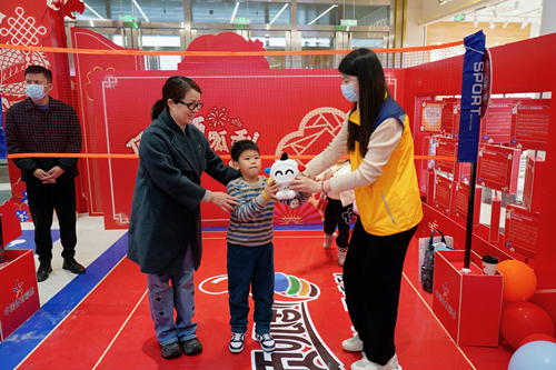 进入活动现场春节喜庆热闹的氛围扑面而来。活动区域分为顶顶顶呱刮、大大大乐透、公益加油站、心愿传达站以及乐小星展示区等区域。在门头拍照区域,精美布置图案吸引众人的目光,大家纷纷和乐小星一起打卡留念;在顶顶顶呱刮区域设置了拦网开展亲子顶球游戏,保持气球不落地即算成功,体验结束后还可抽取体彩送出的精美礼品。除此之外现场设置即开票展示售卖区,在游戏的同时也能感受体彩带来的好运气。