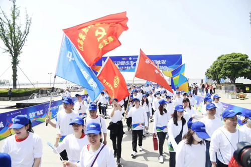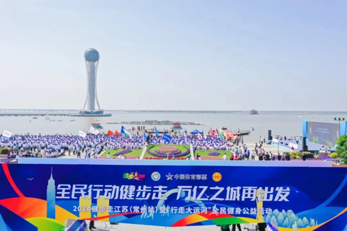 4月27日上午,中国体育彩票公益金资助项目“2024健步走江苏(常州站)暨‘行走大运河’全民健身公益活动”,在常州市武进区揽月湾广场正式启动。超1500名爱好体育健身运动的企业职工和各界人士参加本次健步走活动,共赏西太湖美丽风光,尽享运动带来的无尚快乐。