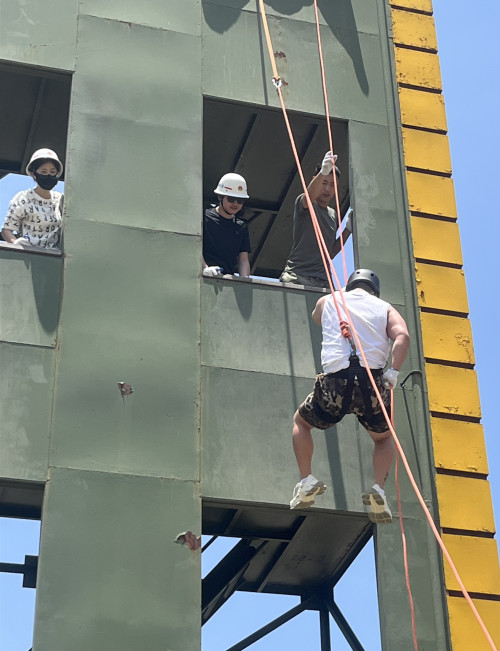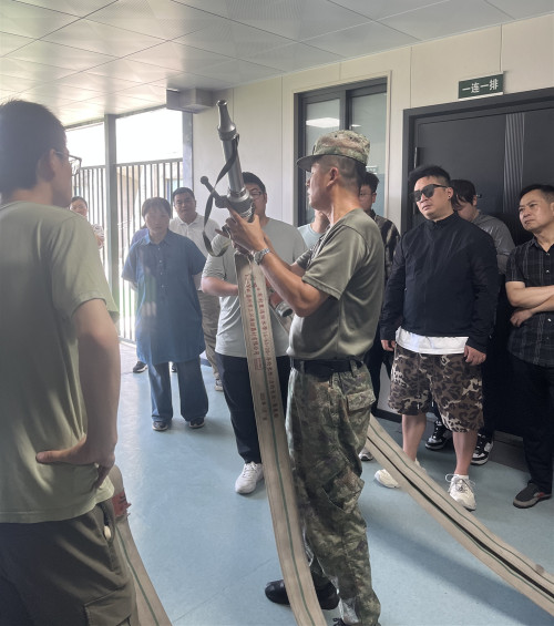在实践环节中,参训人员亲自参与了消防器材的实操演练。教官展示了消防车、消防作战服以及各类消防工具的使用方法,特别是消防水带的操作技巧。在现场,参训人员在教官的指导下,实践了消防水带的连接、水带的铺设和收卷,以及水枪的正确使用方法等内容,切实体验了消防员扑灭火灾的艰辛,同时掌握了灭火的基本技能。