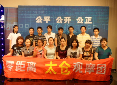 当晚8点左右,太仓体彩观摩团一行来到了江苏教育电视台办公楼。在一楼的大厅内,负责接待的人员首先一一核对了身份证,这也让销售员们感受到了开奖的严肃性。当来到了三楼开奖现场时,首先映入眼帘的便是那醒目的开奖背景“公开、公平、公正”。随后,省体彩中心的工作人员和两名公证员均在场,在所有代表的监督下除去封条,打开了保险柜,从中取出了7位数摇奖机的钥匙和试机号球及开奖号球。