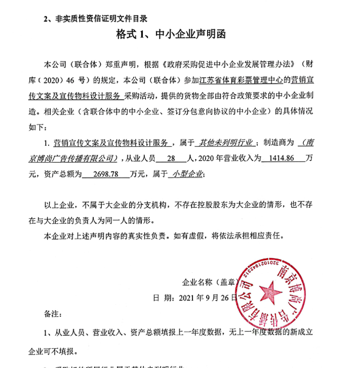 《中小企业声明函》