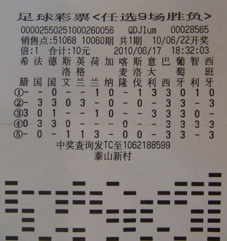 在小王的彩票上,巴西和葡萄牙两支队伍的比赛结果他都猜了,他说,之所以这样投注,除了因为他们是传统强队之外,更主要是因为他们是自己最喜欢的球队,“我虽然不能踢球,但是真的很喜欢这个运动,也希望我喜欢的球队可以走得更远。”