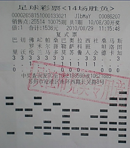 出差购彩两不误,一举中得足彩14场胜平负29715元