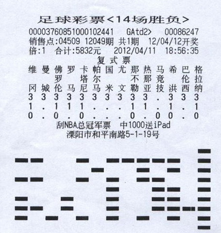 足彩胜负游戏12049期可谓是一场大捷,全国中出28注一等奖,每注奖金91万元,江苏表现不俗,独揽3注,由于14场胜负大都是复式投注,连同中得的二等奖,我省有两位中奖者最后的总奖金都超过了百万。常州和徐州得主都是大额复式票,分别投注了5832元和5184元,除都中得1注一等奖外,常州还收获了14注二等奖,总奖金达到103万,而徐州则拿下13注二等奖,总奖金达到102万。本期唯一没有达到百万的是来自盐城09077站点的大奖得主,尽管如此,但这位得主也是本期最牛的一位, 14场比赛中仅有3场采用多选,其余均为“独胆”,但多场冷门均被其命中,如英超维冈对曼联一战,居然单选3,大胆博曼联输球,最后这张仅为24元的小额复式票除命中1注一等奖外,还拿下4注二等奖,总奖金为95万元。