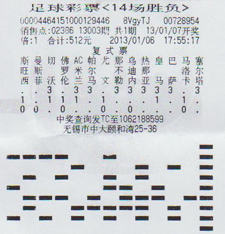虽然竞彩已经取代传统足彩成为竞猜游戏中的主流玩法,但传统足彩也因其鲜明的特点仍受到不少玩家的青睐。无锡的陈先生便是此中高手,前不久,他凭借一个小额复式票一举擒下传统足彩“14场胜负”13003期185万大奖。