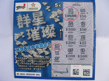 中奖者何先生(化名)是常熟的一位老板,闲来就爱买点“顶呱刮”,而他单位旁边的55888站点是他购彩的“根据地”,每天花上五六十元,少有间断,百八十元的小奖也中了不少。他说:“我特别喜欢即买即开的‘顶呱刮’,就是图个乐子,玩个心跳。”当天上午,何先生再次来到该站点,先花30元买了3张“群星璀璨”,刮开后并未中奖,他没有气馁,因为何先生知道“顶呱刮”的中奖率是很高的,相信后面会有奖的。于是,他又花40元撕下了连号的4张,他当时并没有憧憬很高的奖项,只想收回先前的30元。当何先生刮到第3张的时候,出现了对应号码“28”,而“28”下赫然呈现出“100000”的数字,“群星璀璨”票种的最高奖金十万元就这样被他收入囊中。