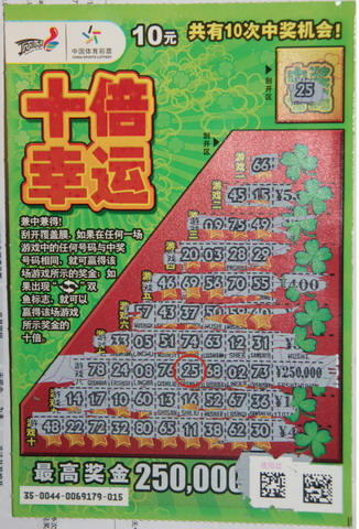 2009年,顶呱刮“五倍幸运”在即开彩市掀起了不小的中奖风爆,在岁末年初“十倍幸运”的上市也使得奖金翻倍,最高25万的大奖为彩民带来了更多的幸运。
