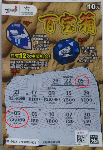 费先生表示,在各种面值的“顶呱刮”彩票中,他最青睐的就是10元和20元的票种,这些票种多达10余次甚至20次的中奖机会,25万到100万元的大奖对费先生来说很有吸引力。虽然一直期盼大奖,但当看到彩票上清晰地显示5000元的中奖金额时,还是让费先生着实惊喜了一番,这张“百宝箱”彩票也让他这位“顶呱刮”的热心彩民尝到了大奖的甜头。