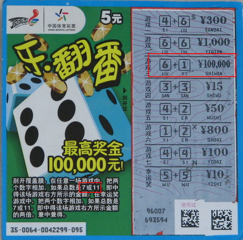 这次中十万的“乐翻番”很惊喜,不过显然最近蒋先生财运高照,在体彩中心一楼等兑奖的功夫,看到有“顶呱刮”的票又忍不住手痒刮了几张“红红火火”结果居然又中了500元!蒋先生临走时豪言壮语的表示,我最近都在坚持刮“财神到”,争取把最大的大奖拿下!