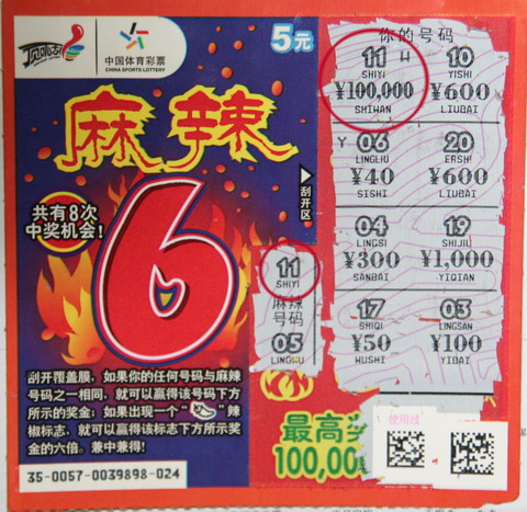 中奖彩民是一位二十多岁在锡打工的小伙子,前几天刚刚回来复工。趁着不忙的时候小伙子就喜欢到体彩网点刮顶呱刮来玩。3月17日小伙子像往常一样来到江阴华士02746网点,看着他一直钟情的麻辣6,但小伙子没有马上下手,而是看着别人刮。等观察一阵之后,小伙子内心感觉时机已到,果断出手买了两张麻辣6,半分钟过后顶呱刮就给了他一个大大的惊喜,最高奖金10万元!小伙子还镇定地把中奖彩票拿给销售员看,待销售员告诉他应该到无锡体彩中心领奖后,顿时小伙子带着彩票冲出了销售网点。