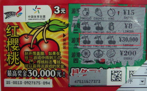 说着,她就拿出了那张中奖的红樱桃,还很开心地说起刮出大奖的经历:“第二排前两个刮出的都是樱桃,我还很高兴呢,刮第三个的时候手都有点抖,可惜刮出来个菠萝,不过看到后面的奖金是8块钱,我也安心了点。”刮第三排的时候,虽然前两个也都是樱桃,但刘虹表示并没有之前那么期待,就怕又是空欢喜一场。“刮完第三个,我一看是个樱桃,别提多兴奋了。奖金刮开更是把我吓了一跳,好多零。”