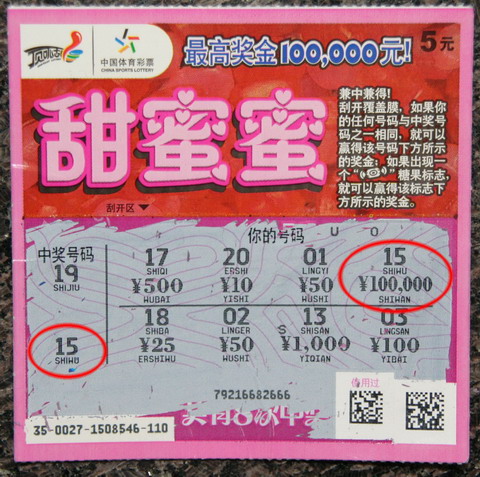 小李也是体彩顶呱刮的超级粉丝,每天刮上几张即开彩票既是奉献一份爱心,也是一种愉快享受。在丰富的顶呱刮票种中,小李除了喜欢尝鲜刮最新上市的彩票外,还对去年就已经为无锡彩民送出多个大奖的“甜蜜蜜”喜爱有加,当然也因为“甜蜜蜜”曾为他送来了几个中等奖级的奖项。小李告诉我们,他与甜蜜蜜很有缘,第一次刮的时候就刮中了1000元奖金,因此也就有了这一段割舍不下的感情在里面。29日晚上,小李照常来到一家体彩销售网点,在刮了新票“3D魔方游戏”后,用中得的奖金换了两张“甜蜜蜜”,结果就是这两张彩票,其中一张竟藏着10万元大奖。