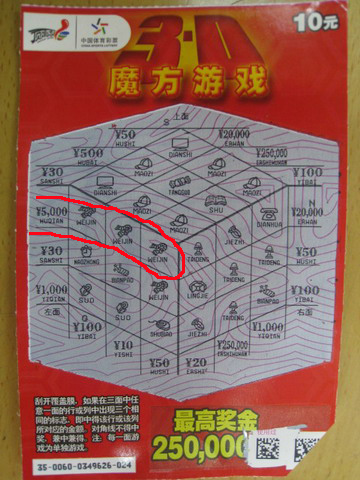 彩民李先生购买的即开彩票是刚刚上市不久的“3D魔方游戏”,同样是和家人一道踏青,地点是南山公园。李先生是本人亲自出马,在销售员的推荐下购买的,呵呵,知道买“时鲜货”呢!50元买了5张,前面都是空门,就在他失望的时候,幸运之神还是眷顾他,给他带来5000元奖金,这个清明节过得着实愉快哦。