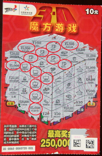 小李告诉我们,一开始他以为自己中了15000元,可是看一下彩票背面的奖级表,没有15000元的奖项。他再横排、竖排仔细一看,竟有4个5000元,共计2万元奖金。 “这相当于我几个月的工资呢”,收获奖金后的小李可高兴坏了,“顶呱刮太有趣了,平常刮着玩玩就当娱乐了,也是奉献一份爱心嘛。”