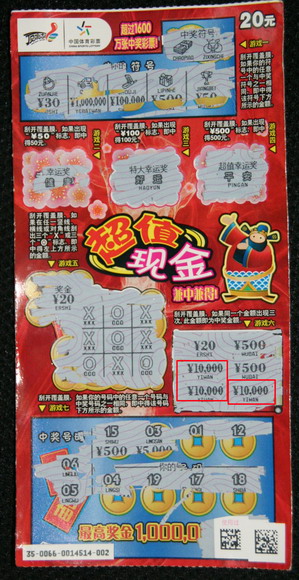 据小张介绍,现在网点上刮“超值现金”的彩民占了多半,很多网点刚领回去的票就被彩民抢购一空,自己刮彩票的时间不长,还是第一次看到这种情景。幸运的是小张买了两张“超值现金”和两张“甜蜜蜜”共计50元钱。结果一张超值现金中的第六个游戏刮出三个相同的奖金符号,获得1万元奖金。小张还介绍,这次的20元新票“超值现金”特别好玩,游戏种类多,乐趣多,而且又有加送笔本电脑的活动,这引发了很多彩民的热情。