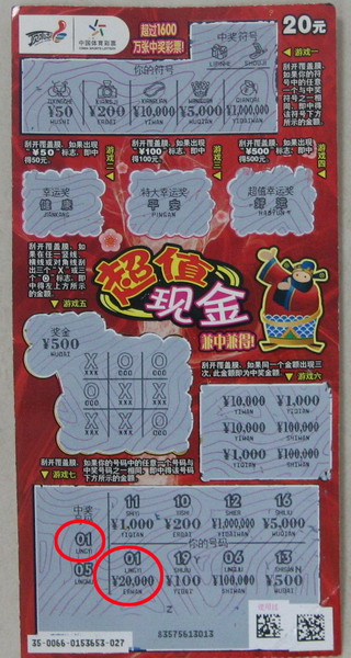 据悉,本次中奖者韩先生(化姓)为徐州03461站点的一位忠实彩民,平时喜欢体彩“超级大乐透”、“7位数”大盘玩法,也曾中过一些奖。这天下午,韩先生照例来到03461体彩站点,购买完当期“超级大乐透”,看到站点门口摆放的“超值现金”X展架和张贴的海报后,很感兴趣,经销售员介绍,得知“超值现金”是新上市的体彩即开新玩法,最高奖金100万元,而且只要中5000元及以上奖项就可获得笔记本电脑一台。韩先生当时就买了1张刮了起来,第一张就中了20元,然后用中奖的20元又换了一张,结果又中奖了,就这样韩先生一连用中奖所得换购了10张“超值现金”。功夫不负有心人,最后一张刮出了大奖20000元,并同时中得笔记本电脑一台。这令韩先生高兴不已,他表示今后还要继续支持体彩,奉献爱心,支持公益事业。