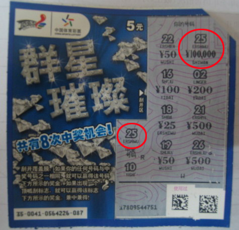 随着购买人群的不断扩大,中奖人数也不断增多,新票热卖,老票也走俏,刚刚送走两位“红樱桃”4000元中奖彩民,这不,体彩中心又来了位“群星璀璨”中奖者,金额还不小,10万元!
